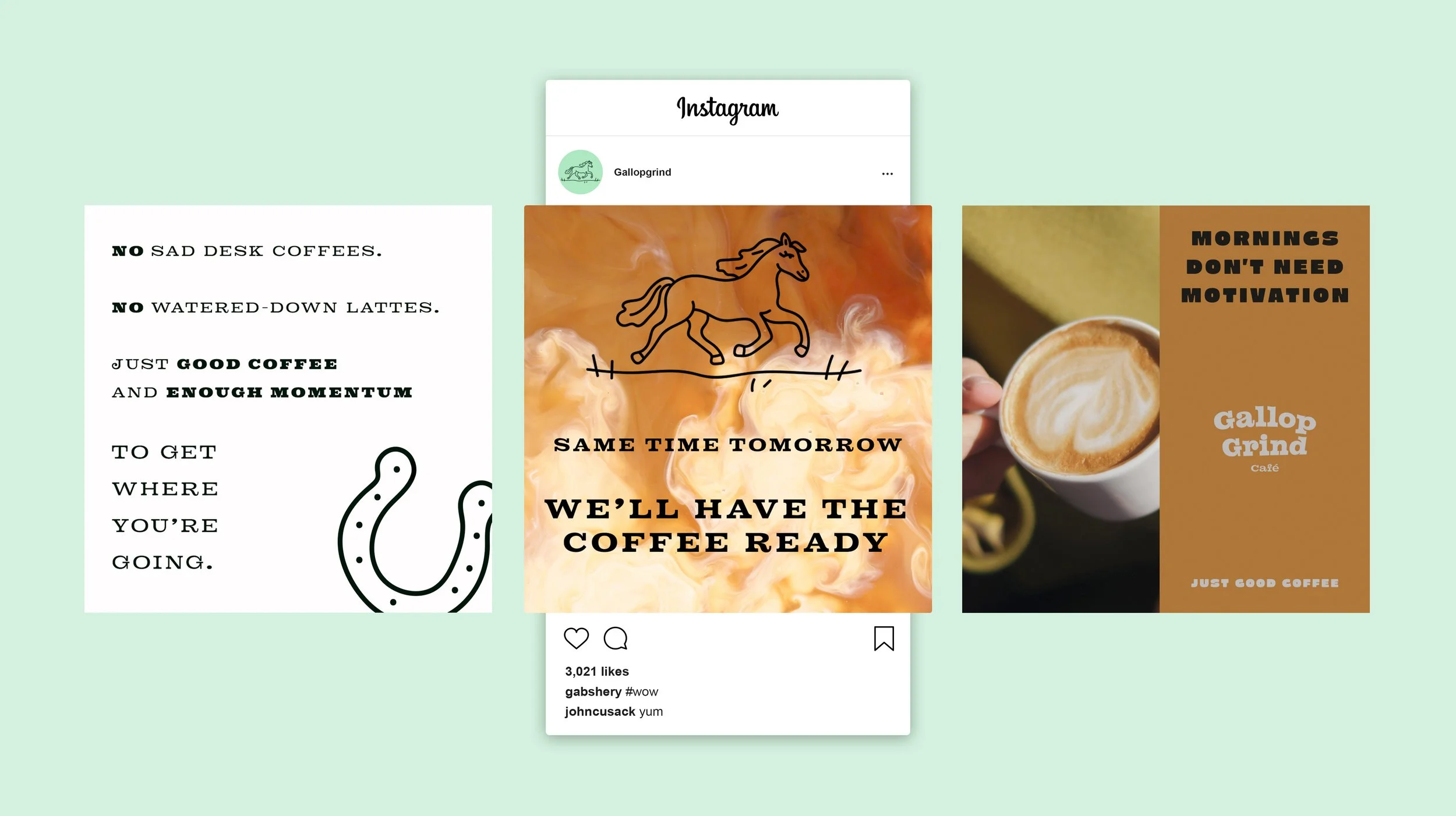 Many specialty coffee brands lean heavily in one direction, either rustic and understated, or overly polished and precious. I wanted Gallop Grind to sit somewhere in between: modern, graphic, and intentional, but still approachable.